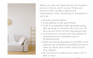 When you do not meet the prime lenders (strict) criteria, don’t worry! There are several other lenders approving “alternative” files. [...]